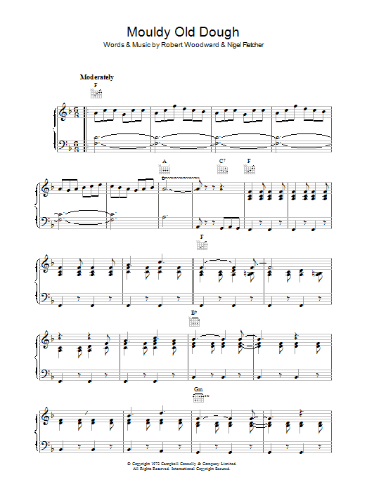 Download or print Lieutenant Pigeon Mouldy Old Dough sheet music, chords and digital score arranged for Piano, Vocal & Guitar Chords. This Pop score includes 4 page(s).