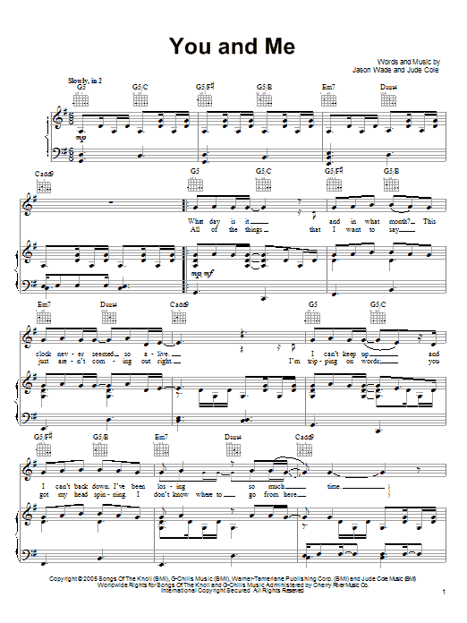 Download or print Lifehouse You And Me sheet music, chords and digital score arranged for Easy Lead Sheet / Fake Book. This Love score includes 2 page(s).