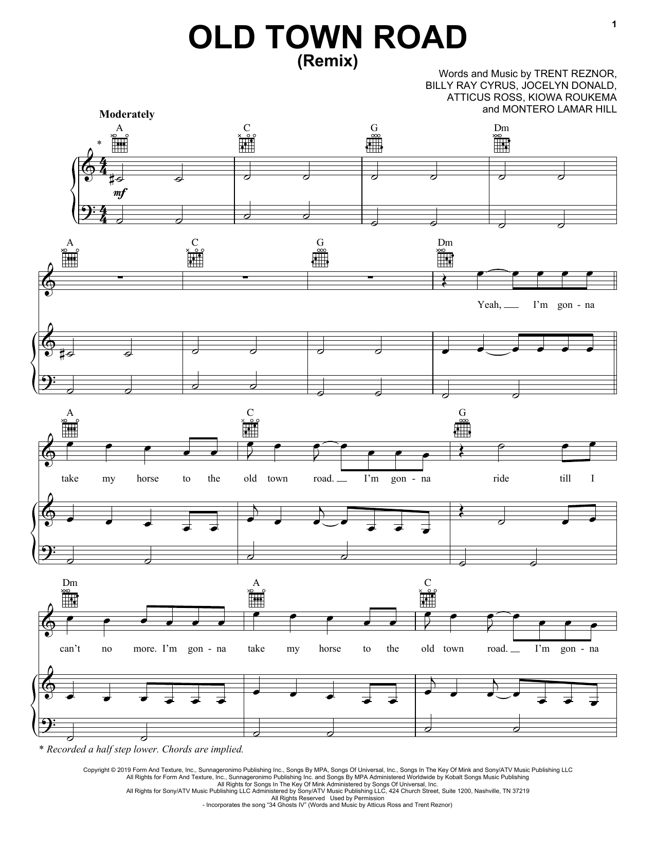 Download or print Lil Nas X feat. Billy Ray Cyrus Old Town Road (Remix) sheet music, chords and digital score arranged for Super Easy Piano. This Country score includes 2 page(s).