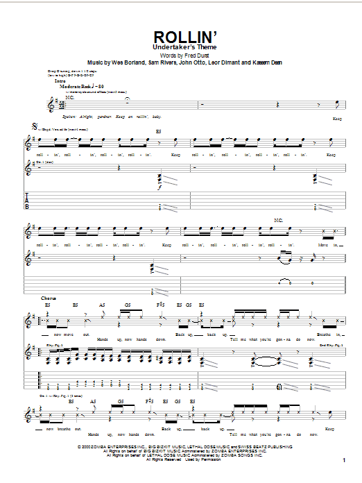 Download or print Limp Bizkit Rollin' sheet music, chords and digital score arranged for Guitar Tab. This Film/TV score includes 3 page(s).