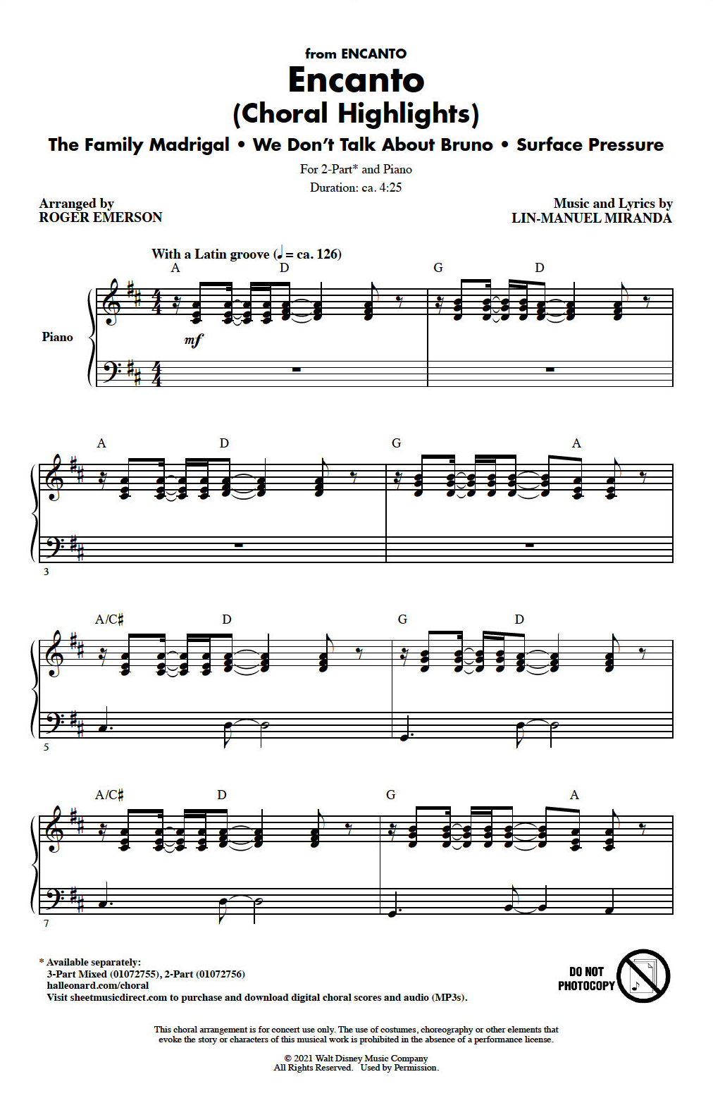 Download or print Lin-Manuel Miranda Encanto (Choral Highlights) (arr. Roger Emerson) sheet music, chords and digital score arranged for 3-Part Mixed Choir. This Children score includes 27 page(s).