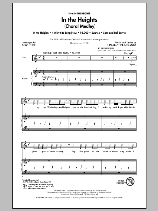 Download or print Lin-Manuel Miranda In The Heights (Choral Medley) (arr. Mac Huff) sheet music, chords and digital score arranged for SAB Choir. This Pop score includes 61 page(s).