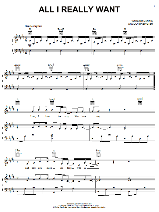 Download or print Lincoln Brewster All I Really Want sheet music, chords and digital score arranged for Guitar Tab. This Christian score includes 13 page(s).