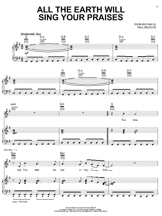 Quick facts All The Earth Will Sing Your Praises about digital sheet music