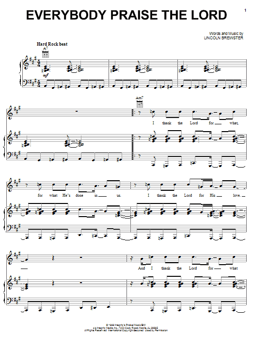 Download or print Lincoln Brewster Everybody Praise The Lord sheet music, chords and digital score arranged for Piano, Vocal & Guitar Chords (Right-Hand Melody). This Christian score includes 6 page(s).