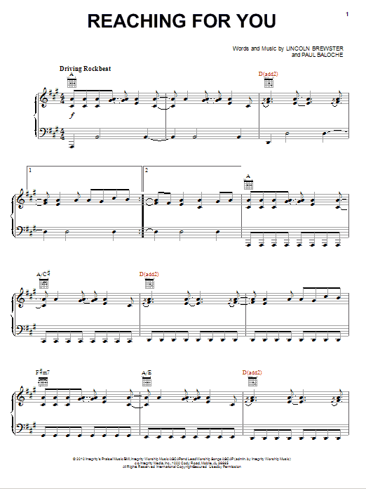 Download or print Lincoln Brewster Reaching For You sheet music, chords and digital score arranged for Piano, Vocal & Guitar Chords (Right-Hand Melody). This Christian score includes 10 page(s).