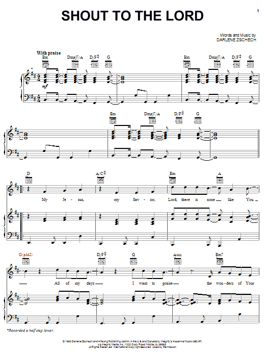 Download or print Lincoln Brewster Shout To The Lord sheet music, chords and digital score arranged for Piano, Vocal & Guitar Chords (Right-Hand Melody). This Praise & Worship score includes 8 page(s).