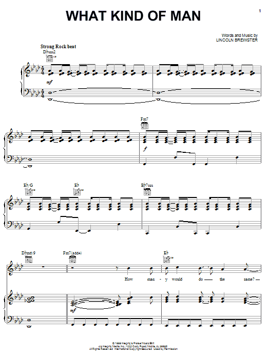 Download or print Lincoln Brewster What Kind Of Man sheet music, chords and digital score arranged for Piano, Vocal & Guitar Chords (Right-Hand Melody). This Christian score includes 9 page(s).