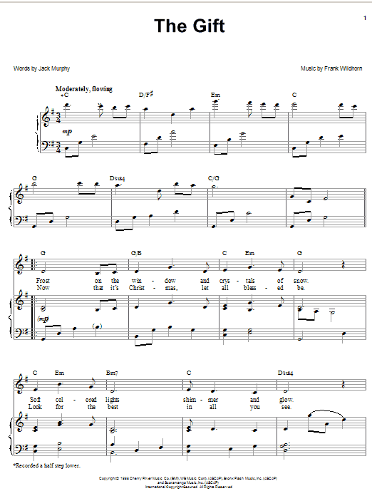 Download or print Linda Eder The Gift sheet music, chords and digital score arranged for Piano, Vocal & Guitar Chords (Right-Hand Melody). This Christmas score includes 6 page(s).