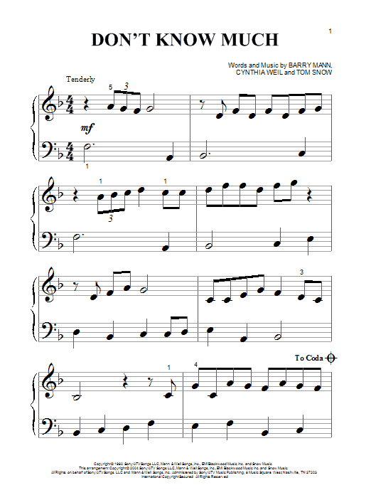 Download or print Linda Ronstadt and Aaron Neville Don't Know Much sheet music, chords and digital score arranged for Piano Solo. This Love score includes 4 page(s).