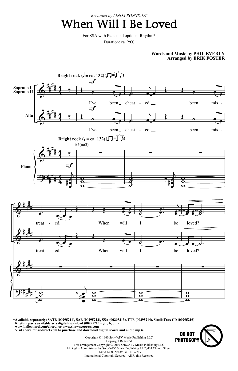 Download or print Linda Ronstadt When Will I Be Loved (arr. Erik Foster) sheet music, chords and digital score arranged for SSA Choir. This Pop score includes 7 page(s).