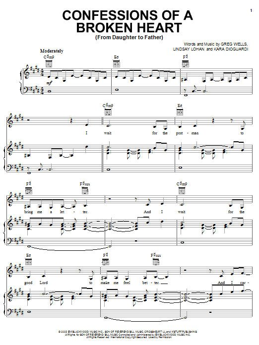 Download or print Lindsay Lohan Confessions Of A Broken Heart (Daughter To Father) sheet music, chords and digital score arranged for Piano, Vocal & Guitar Chords (Right-Hand Melody). This Pop score includes 7 page(s).