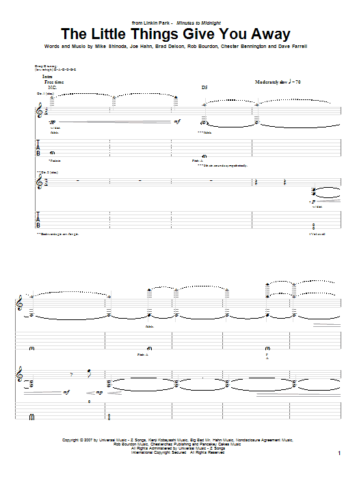Download or print Linkin Park The Little Things Give You Away sheet music, chords and digital score arranged for Guitar Tab. This Metal score includes 10 page(s).