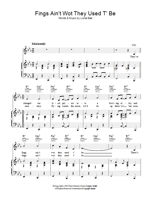 Download or print Lionel Bart Fings Ain't Wot They Used T'Be sheet music, chords and digital score arranged for Piano, Vocal & Guitar Chords. This Musical/Show score includes 3 page(s).