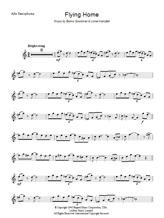 Download or print Lionel Hampton Flying Home sheet music, chords and digital score arranged for Tenor Sax Solo. This Jazz score includes 3 page(s).