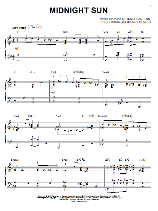 Download or print Lionel Hampton Midnight Sun [Jazz version] (arr. Brent Edstrom) sheet music, chords and digital score arranged for Piano Solo. This Jazz score includes 4 page(s).