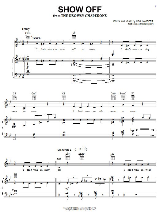 Download or print Lisa Lambert Show Off sheet music, chords and digital score arranged for Lead Sheet / Fake Book. This Musical/Show score includes 2 page(s).
