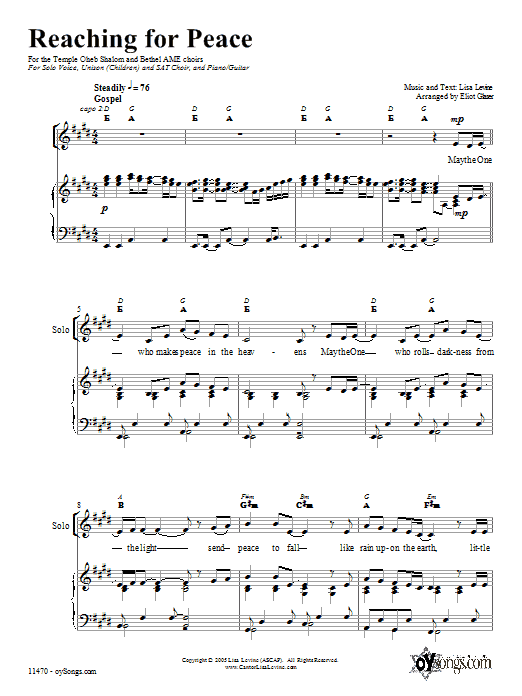 Download or print Lisa Levine Reaching for Peace sheet music, chords and digital score arranged for Lead Sheet / Fake Book. This Traditional score includes 3 page(s).