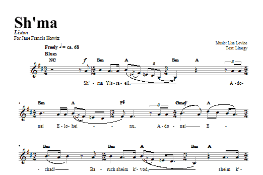 Download or print Lisa Levine Sh'ma sheet music, chords and digital score arranged for Lead Sheet / Fake Book. This Traditional score includes 1 page(s).