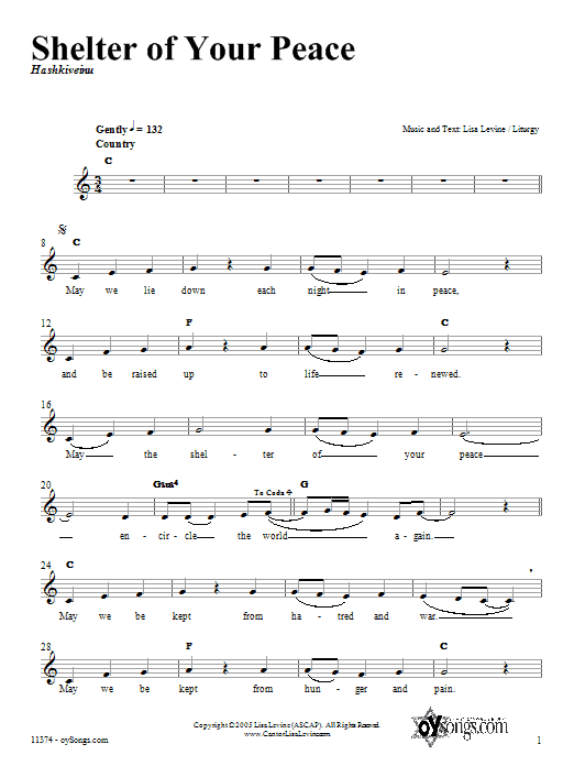 Download or print Lisa Levine Shelter of Your Peace sheet music, chords and digital score arranged for Lead Sheet / Fake Book. This Traditional score includes 3 page(s).