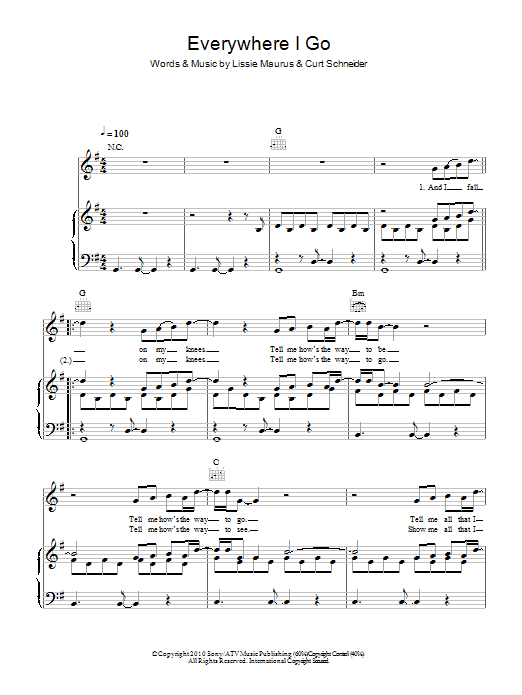 Download or print Lissie Everywhere I Go sheet music, chords and digital score arranged for Piano, Vocal & Guitar Chords. This Pop score includes 5 page(s).