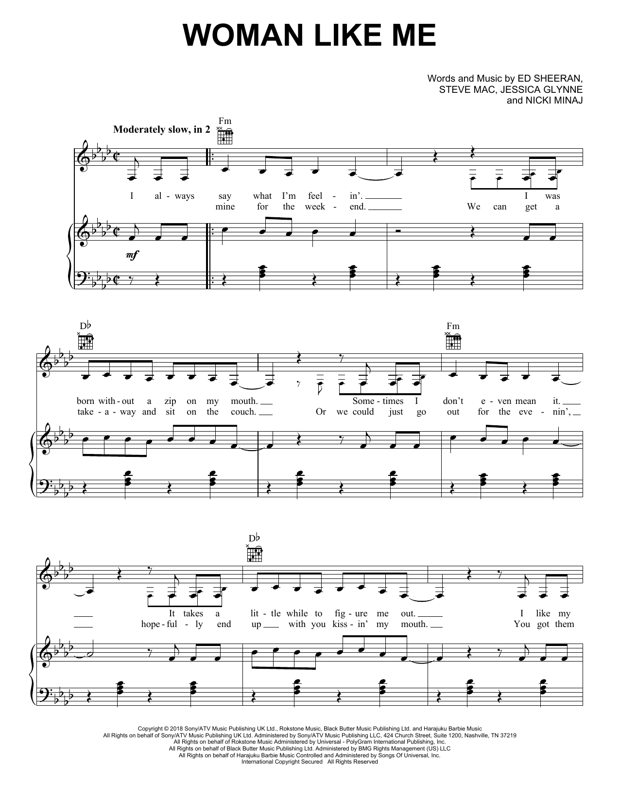 Quick facts Woman Like Me (feat. Nicki Minaj) about digital sheet music