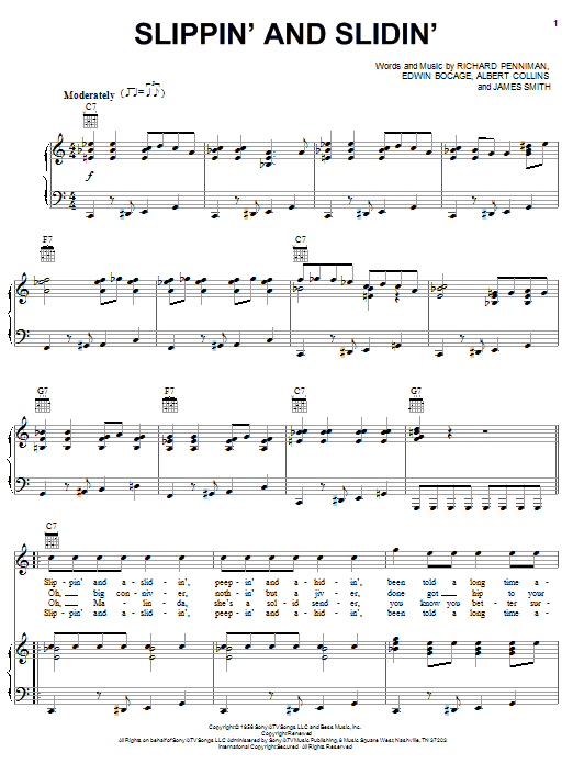 Download or print Little Richard Slippin' And Slidin' sheet music, chords and digital score arranged for Lead Sheet / Fake Book. This Pop score includes 1 page(s).
