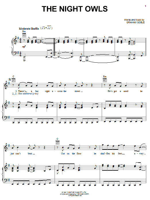 Download or print Little River Band The Night Owls sheet music, chords and digital score arranged for Piano, Vocal & Guitar Chords (Right-Hand Melody). This Pop score includes 4 page(s).