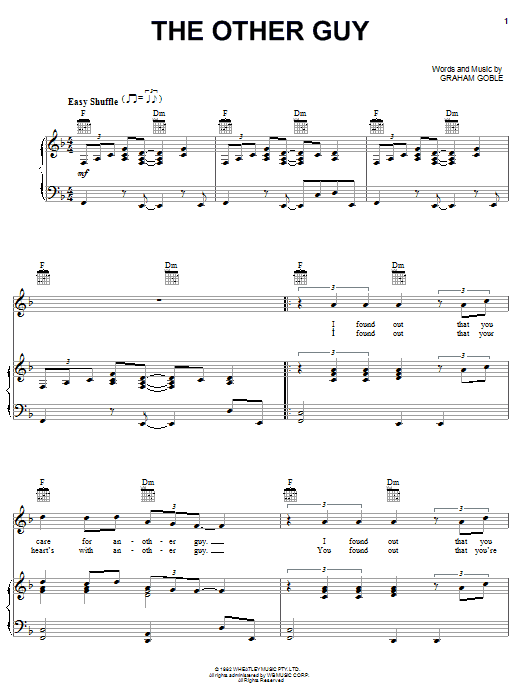 Download or print Little River Band The Other Guy sheet music, chords and digital score arranged for Lead Sheet / Fake Book. This Pop score includes 1 page(s).