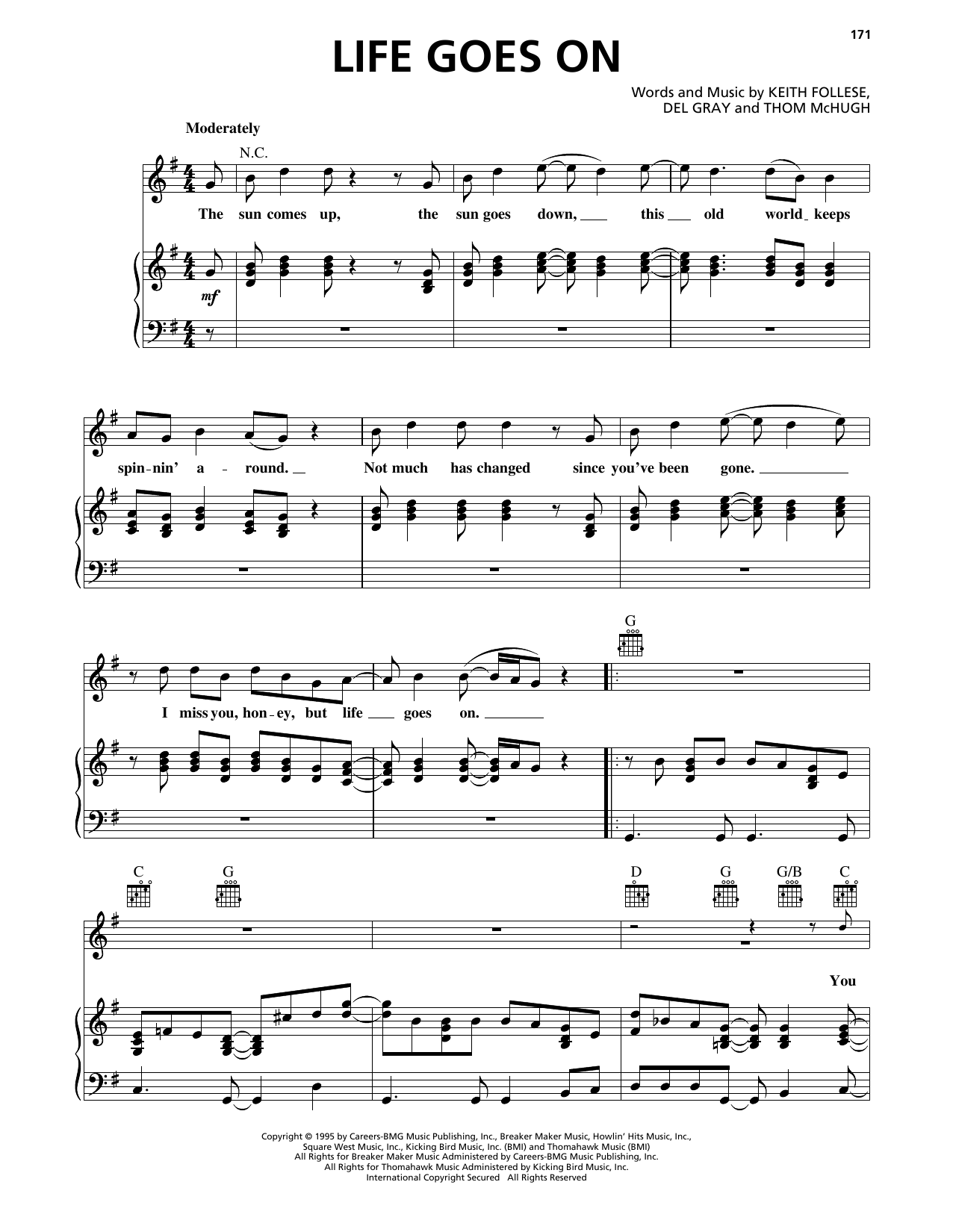 Download or print Little Texas Life Goes On sheet music, chords and digital score arranged for Piano, Vocal & Guitar Chords (Right-Hand Melody). This Country score includes 5 page(s).