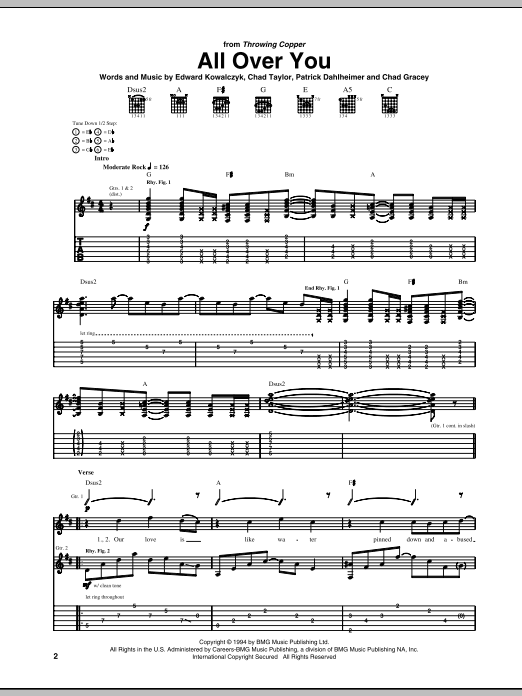 Download or print Live All Over You sheet music, chords and digital score arranged for Guitar Tab. This Pop score includes 5 page(s).