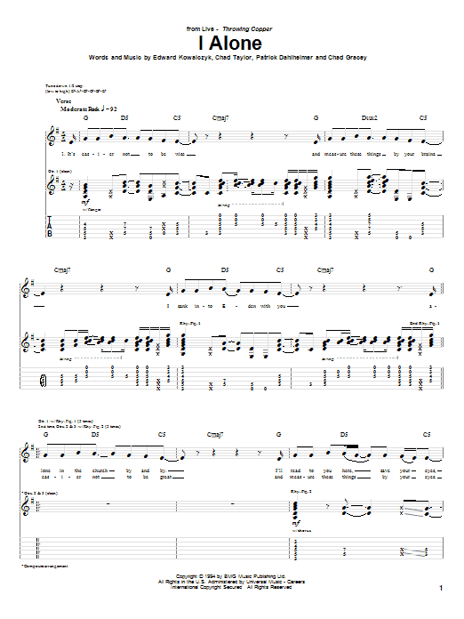 This composition is beautifuly arranged for Piano, Vocal & Guitar (Right-Hand Melody) includes 6 page(s). It is performed by Live. The style of the score is 'Rock'. Catalog SKU number of the notation is 64507.