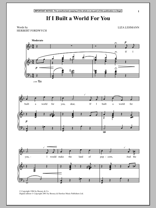 Download or print Liza Lehmann If I Built A World For You sheet music, chords and digital score arranged for Piano & Vocal. This Folk score includes 4 page(s).