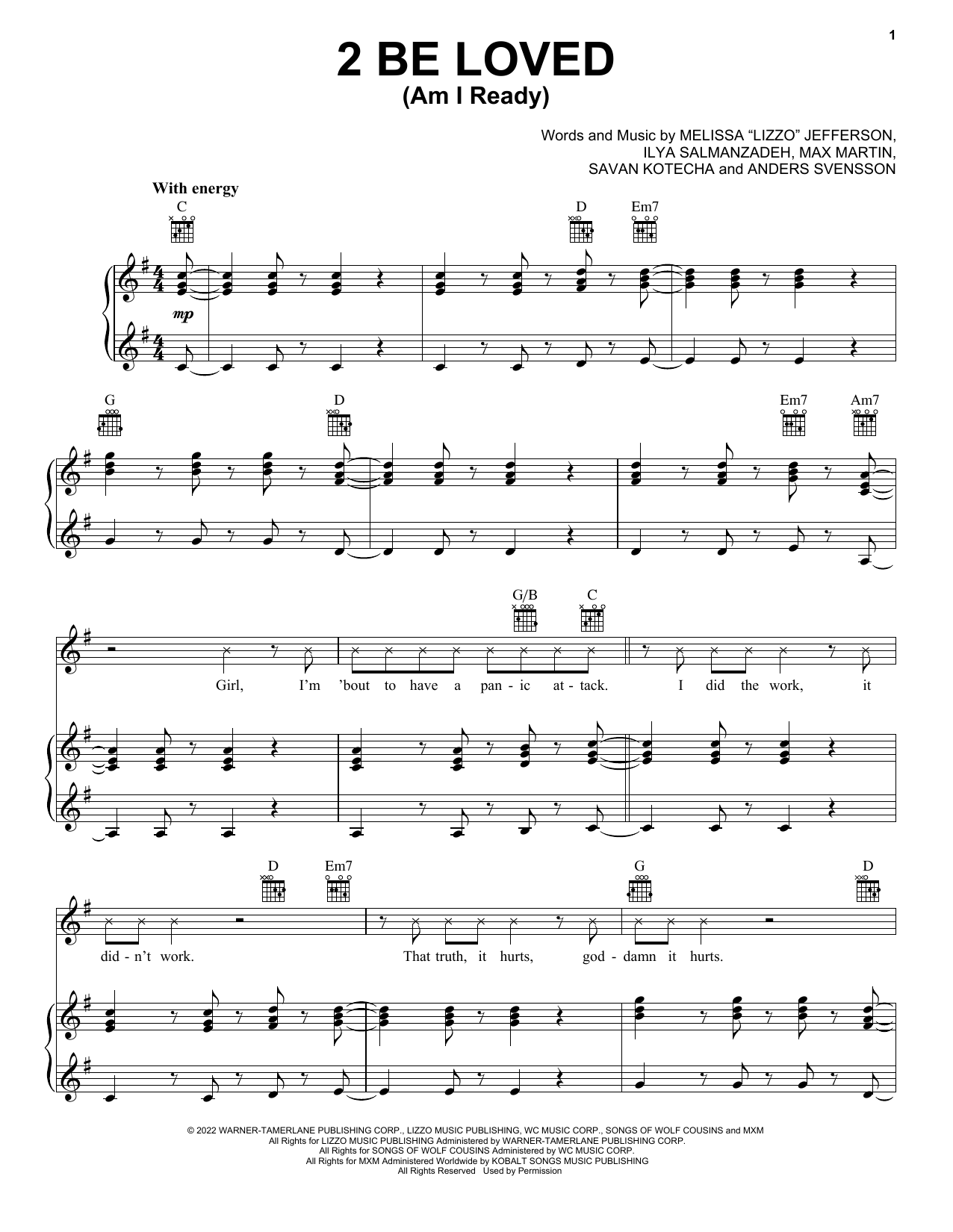 Download or print Lizzo 2 Be Loved (Am I Ready) sheet music, chords and digital score arranged for Piano, Vocal & Guitar Chords (Right-Hand Melody). This Pop score includes 9 page(s).