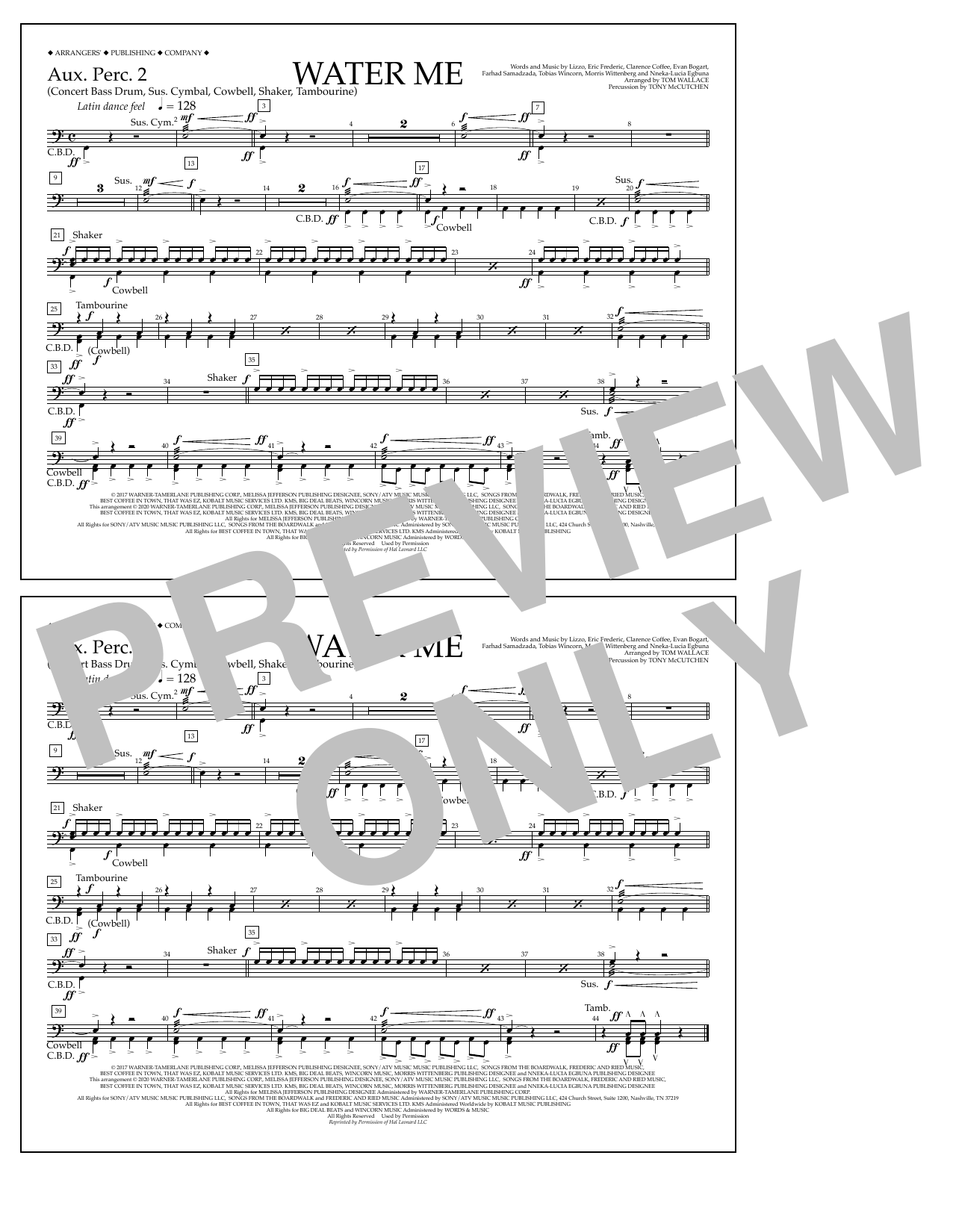 Download or print Lizzo Water Me (arr. Tom Wallace) - Aux. Perc. 2 sheet music, chords and digital score arranged for Marching Band. This Pop score includes 1 page(s).