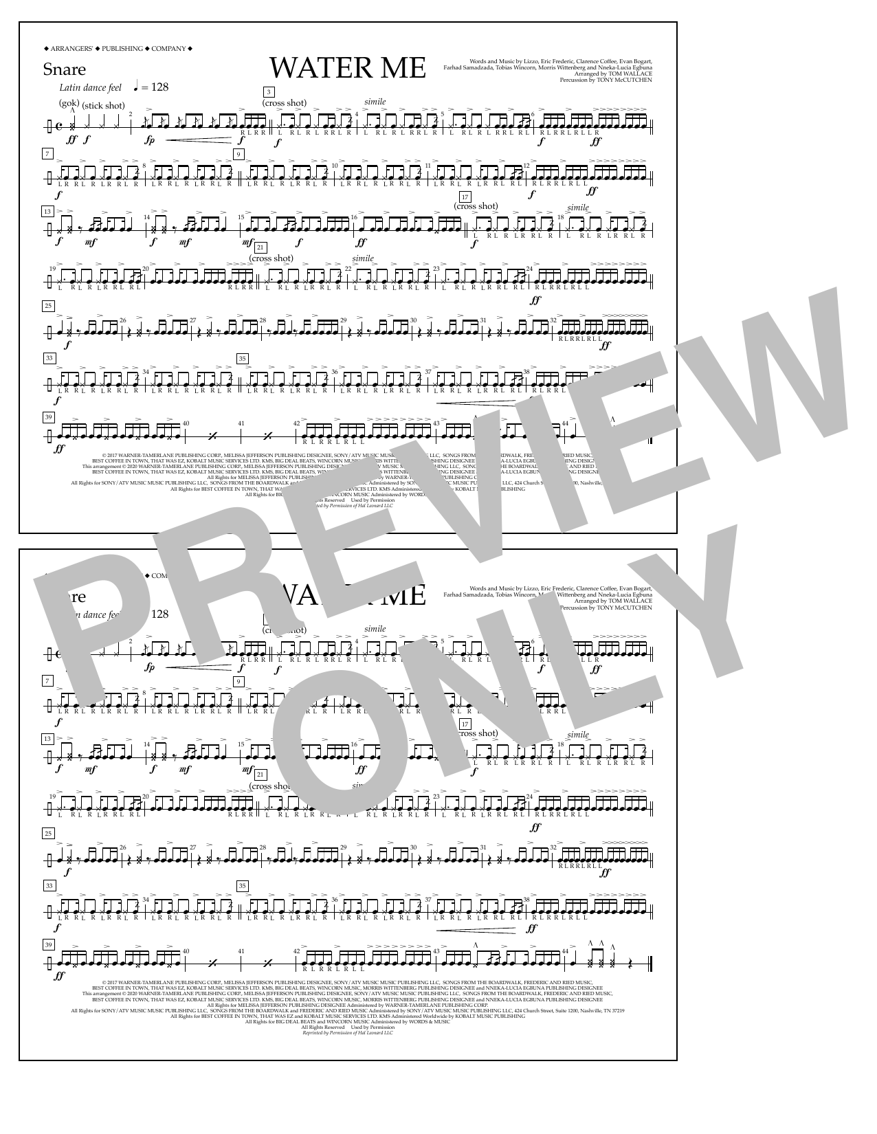 Download or print Lizzo Water Me (arr. Tom Wallace) - Snare sheet music, chords and digital score arranged for Marching Band. This Pop score includes 1 page(s).