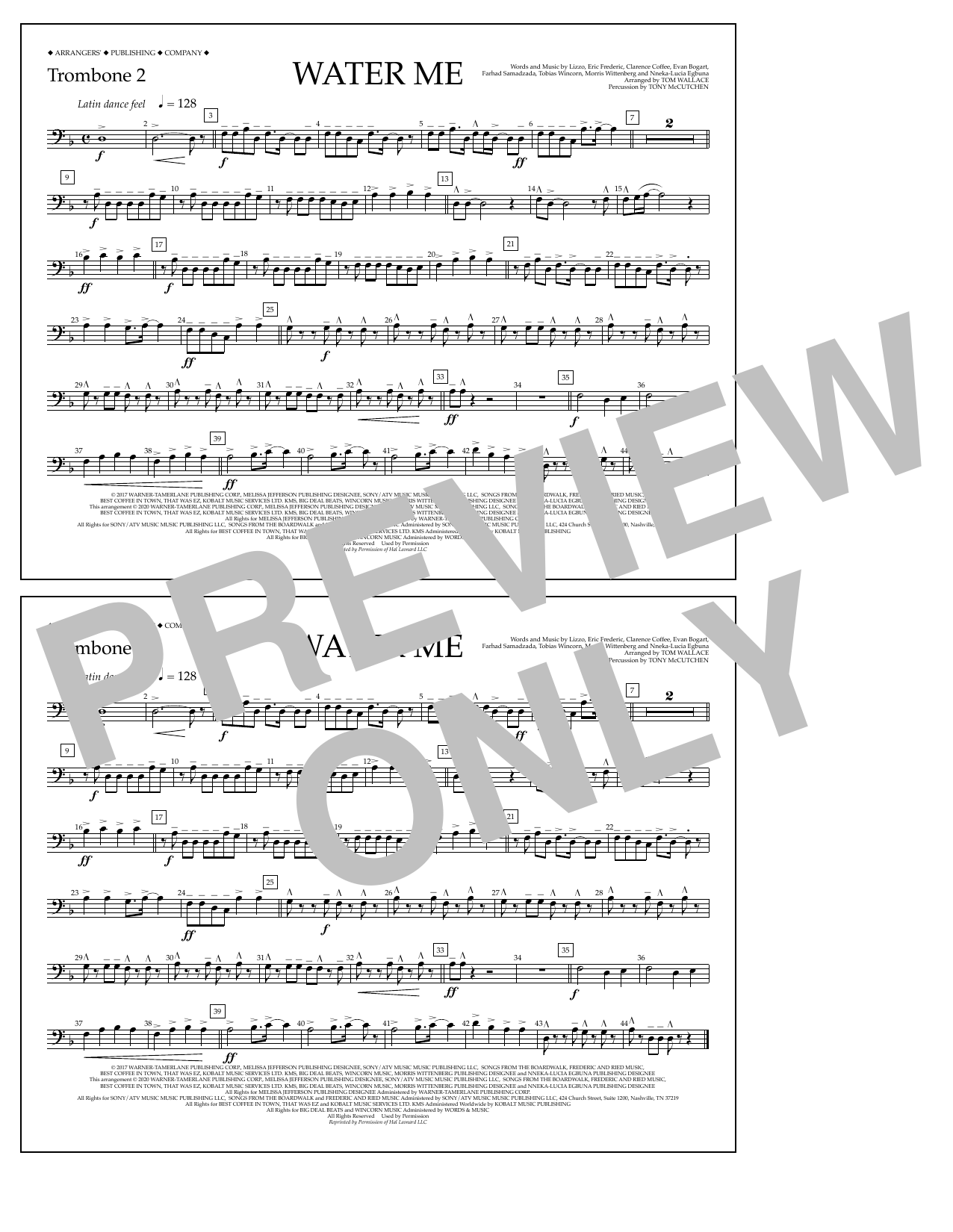 Download or print Lizzo Water Me (arr. Tom Wallace) - Trombone 2 sheet music, chords and digital score arranged for Marching Band. This Pop score includes 1 page(s).