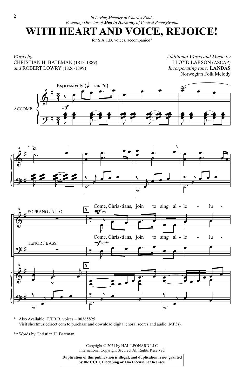 Download or print Lloyd Larson With Heart And Voice, Rejoice! sheet music, chords and digital score arranged for TTBB Choir. This Sacred score includes 10 page(s).