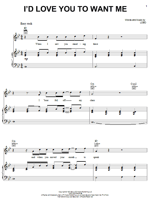 Download or print Lobo I'd Love You To Want Me sheet music, chords and digital score arranged for Piano, Vocal & Guitar Chords (Right-Hand Melody). This Pop score includes 5 page(s).
