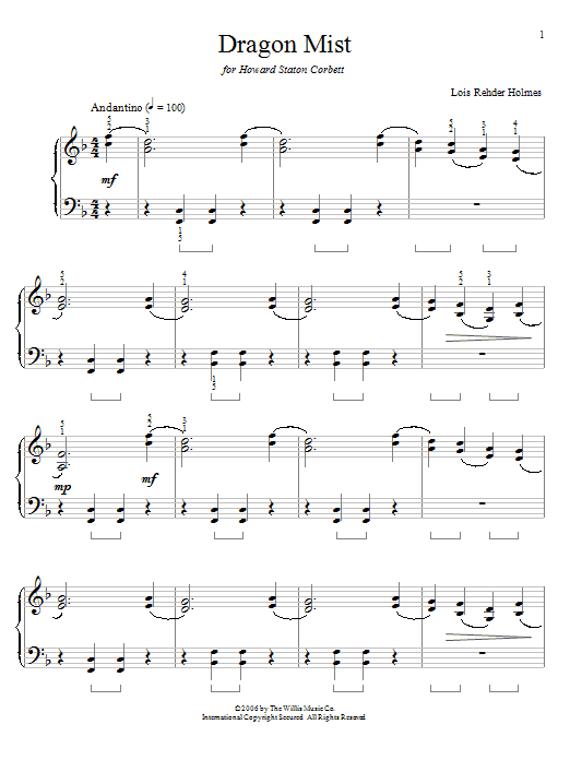 Download or print Lois Rehder Holmes Dragon Mist sheet music, chords and digital score arranged for Educational Piano. This Children score includes 3 page(s).