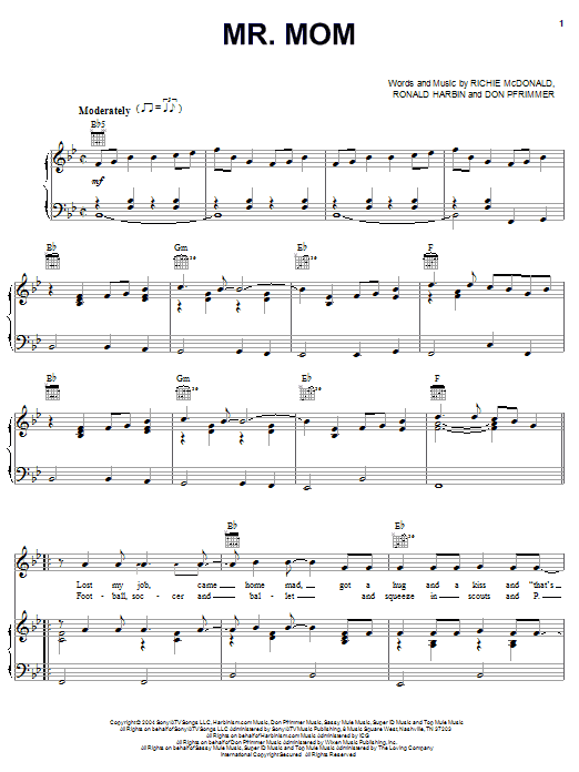 Download or print Lonestar Mr. Mom sheet music, chords and digital score arranged for Piano, Vocal & Guitar Chords (Right-Hand Melody). This Country score includes 7 page(s).
