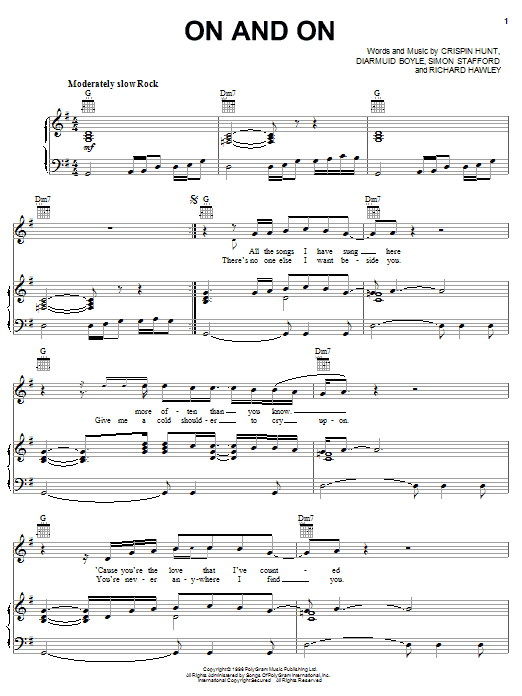Download or print Longpigs On And On sheet music, chords and digital score arranged for Piano, Vocal & Guitar Chords (Right-Hand Melody). This Film/TV score includes 5 page(s).