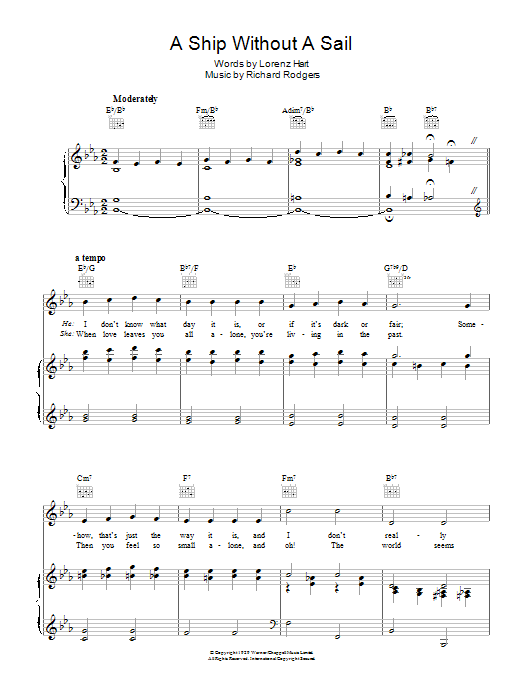 Download or print Rodgers & Hart A Ship Without A Sail sheet music, chords and digital score arranged for Piano, Vocal & Guitar Chords. This Standards score includes 5 page(s).