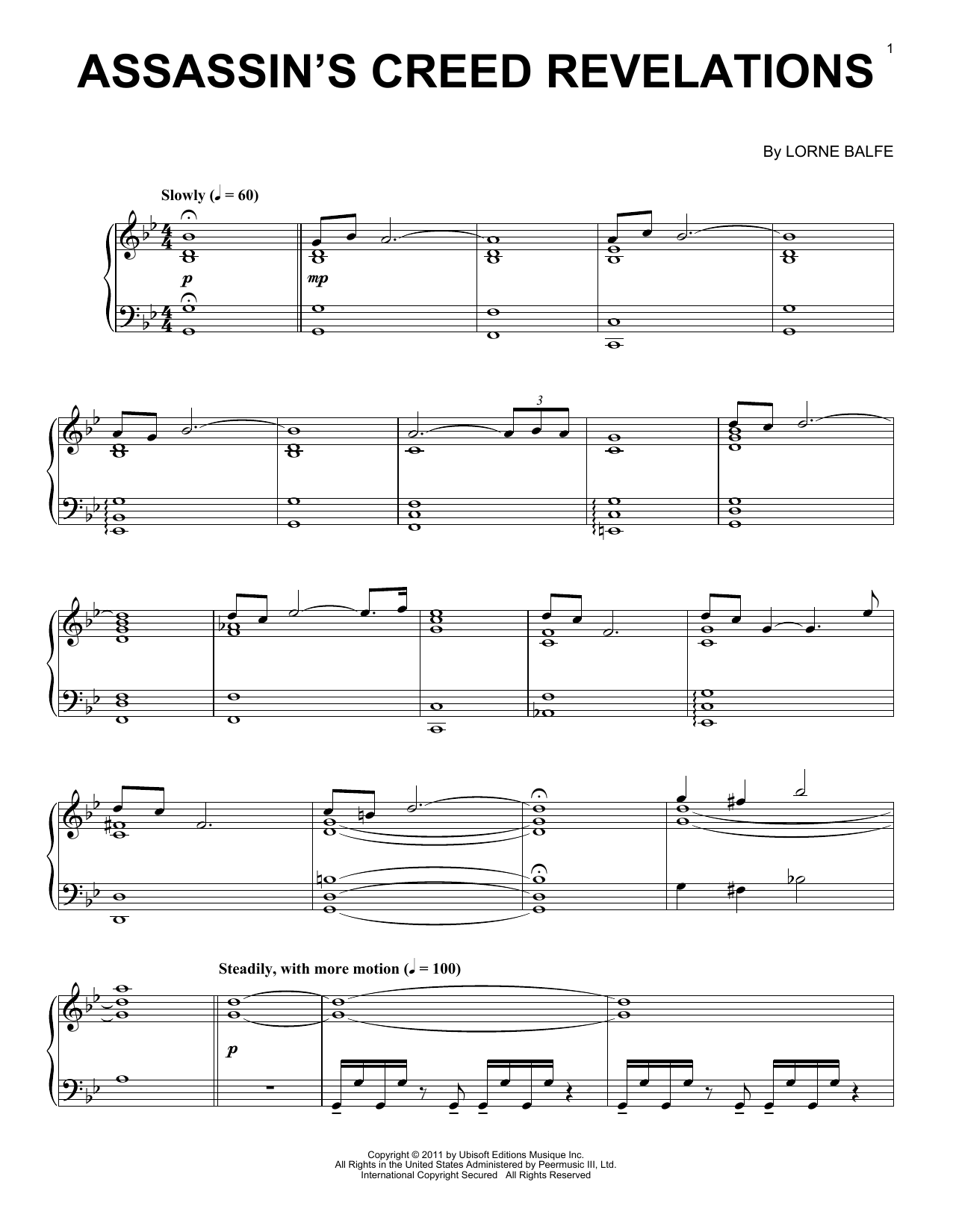 Download or print Lorne Balfe Assassin's Creed Revelations sheet music, chords and digital score arranged for Easy Piano. This Video Game score includes 6 page(s).