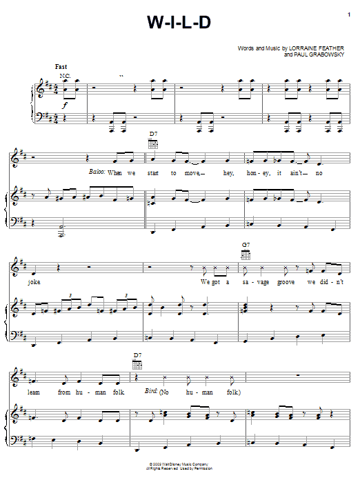 Download or print Lorraine Feather W-I-L-D sheet music, chords and digital score arranged for Piano, Vocal & Guitar Chords (Right-Hand Melody). This Children score includes 10 page(s).
