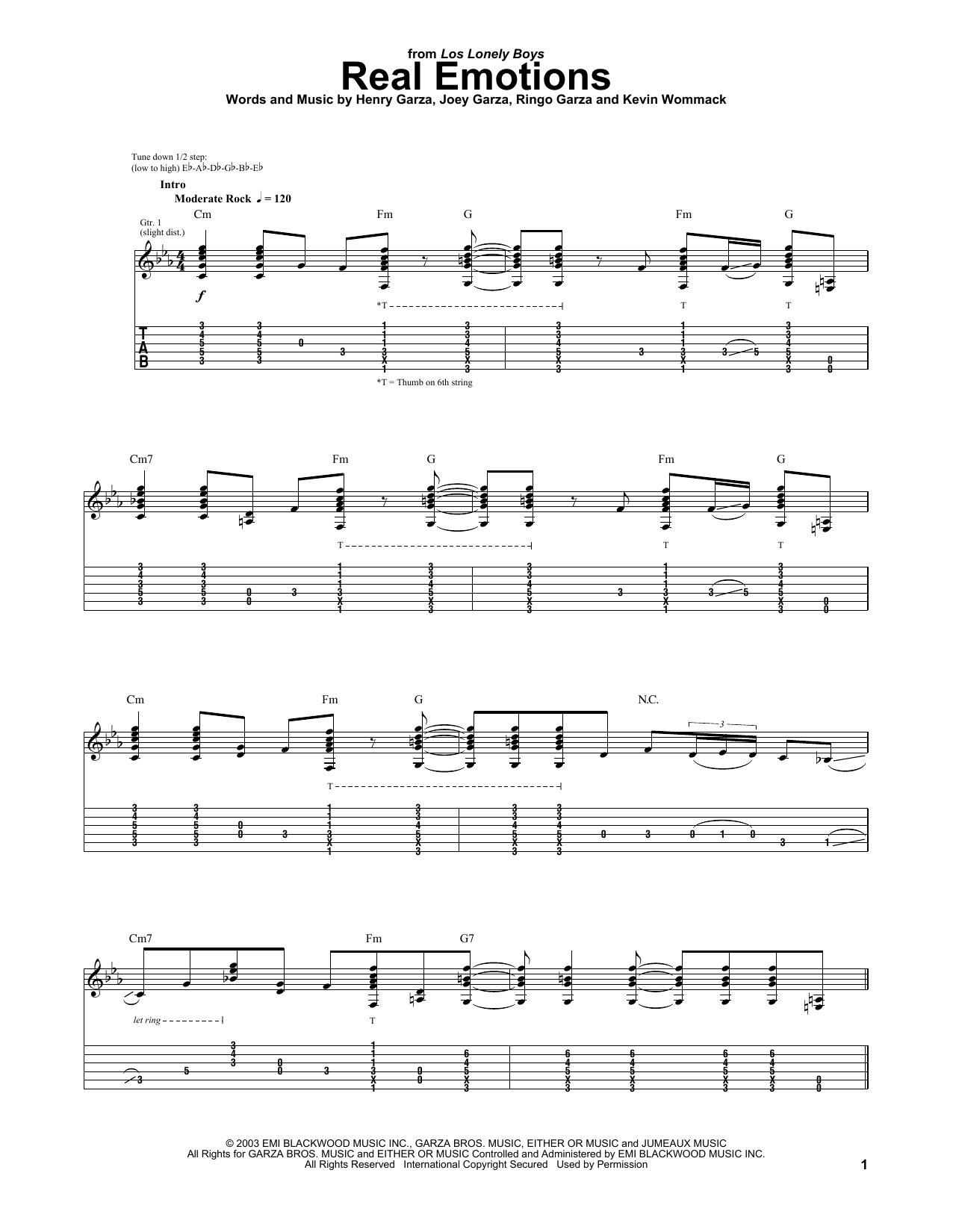 Download or print Los Lonely Boys Real Emotions sheet music, chords and digital score arranged for Guitar Tab. This Latin score includes 8 page(s).