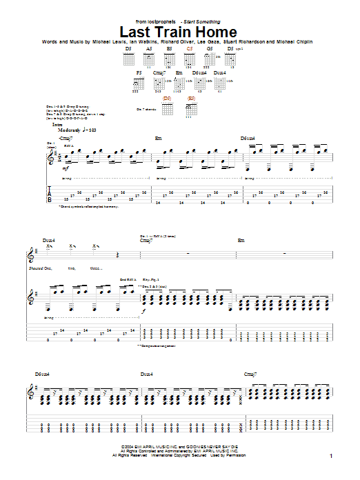 Download or print Lostprophets Last Train Home sheet music, chords and digital score arranged for Bass Guitar Tab. This Metal score includes 8 page(s).
