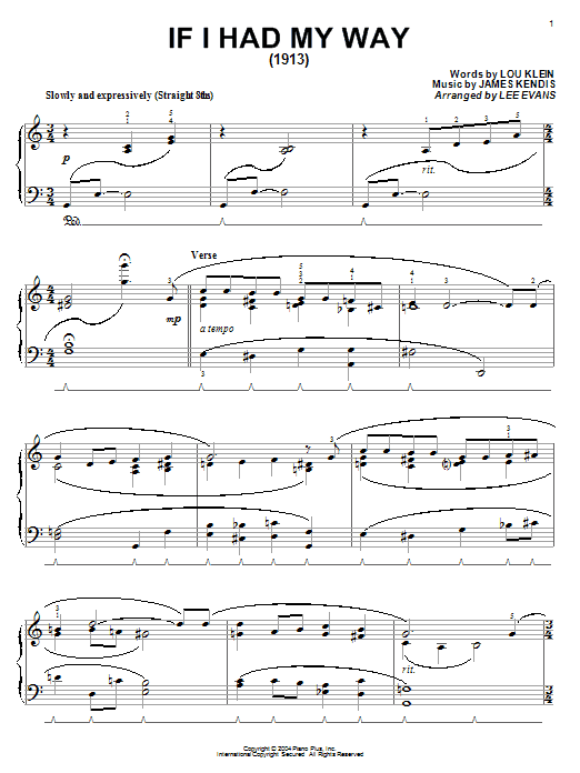 Download or print Lou Klein If I Had My Way sheet music, chords and digital score arranged for Piano Solo. This Standards score includes 3 page(s).