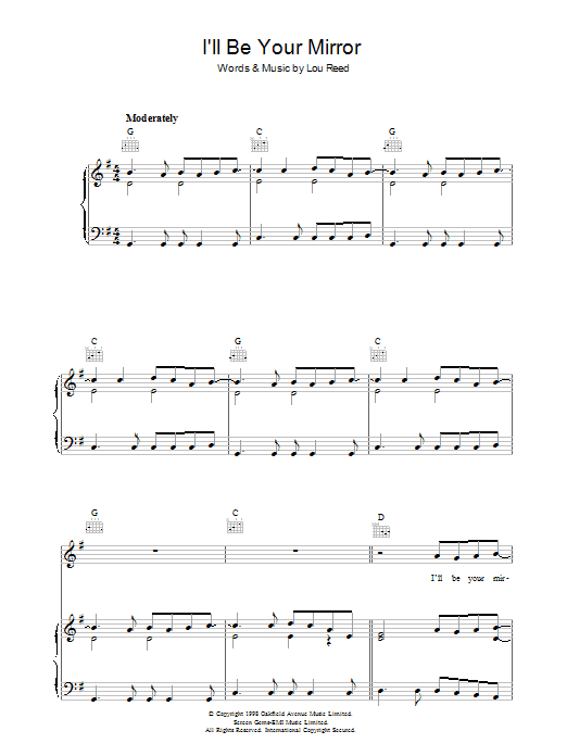 Download or print Lou Reed I'll Be Your Mirror sheet music, chords and digital score arranged for Piano, Vocal & Guitar Chords. This Rock score includes 5 page(s).