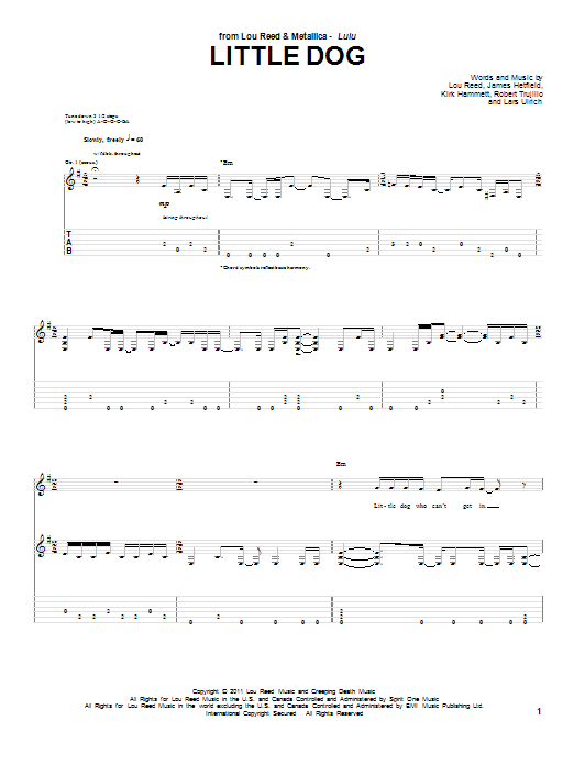 Download or print Lou Reed & Metallica Little Dog sheet music, chords and digital score arranged for Guitar Tab. This Pop score includes 12 page(s).